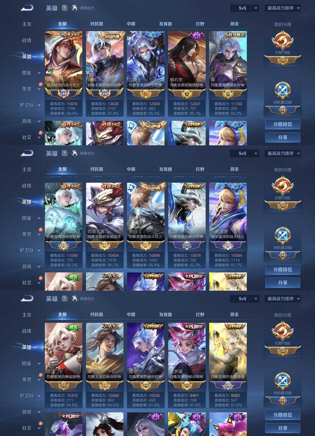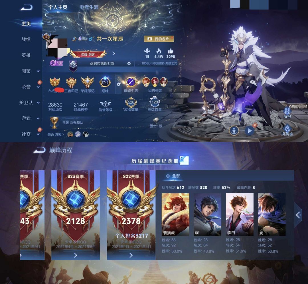 V10巅峰打野78段魔方亮♉巅峰中路全国万强♉历史百星巅峰三千强1.6万60胜国服老虎韩信