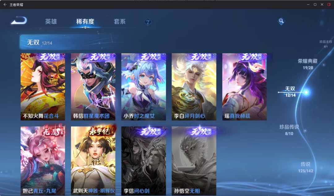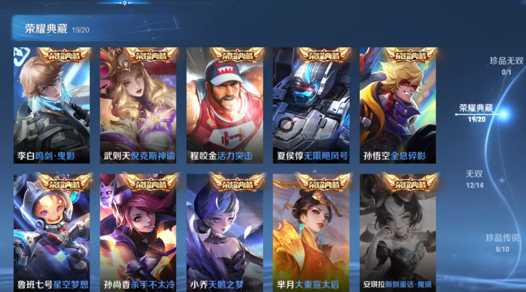 19典藏 12无双 8珍品 125传说 726皮肤 带妹号 嘎嘎有排面!!!!