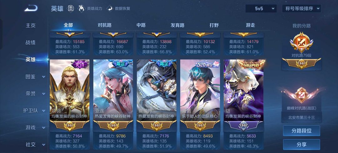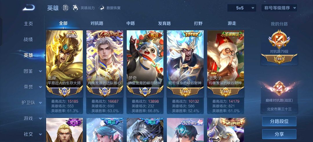 国服司空震达摩梦奇高战⭐️79段对抗路有小魔方⭐️琥珀纪元山河定永曜之星多热门限定⭐️传奇称号