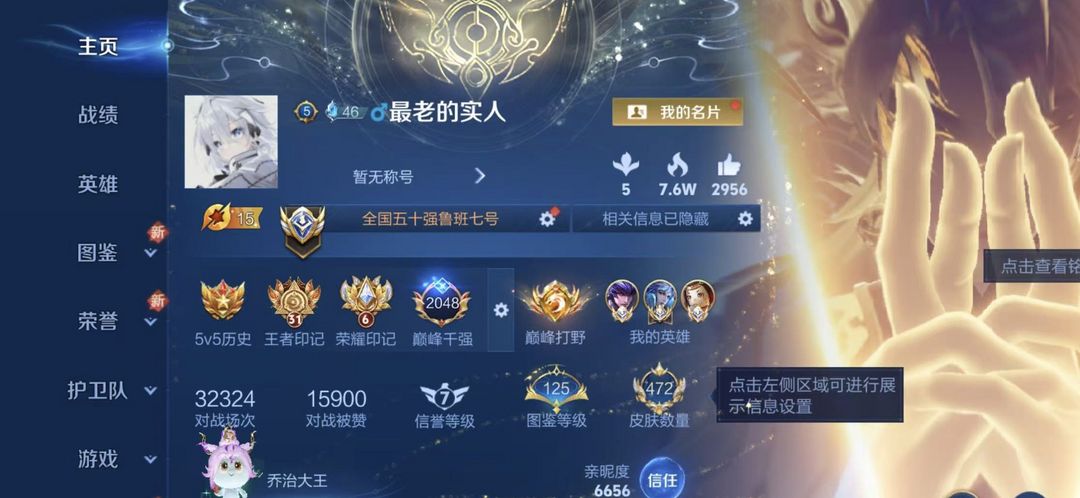 现巅峰2048千强框❤十月小国鲁班七号❤可排禁巅峰❤国服巅峰万强框