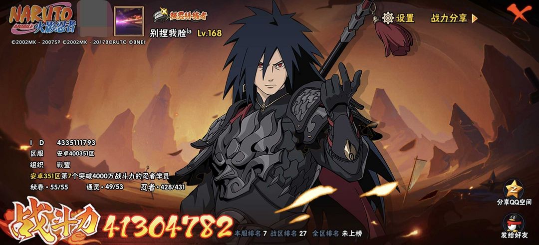 57S全忍者✨4100万战力✨2500属攻秒团本✨神驹斑✨黑绝✨漂泊带土✨侠隐佐助✨十尾带土✨五影斑