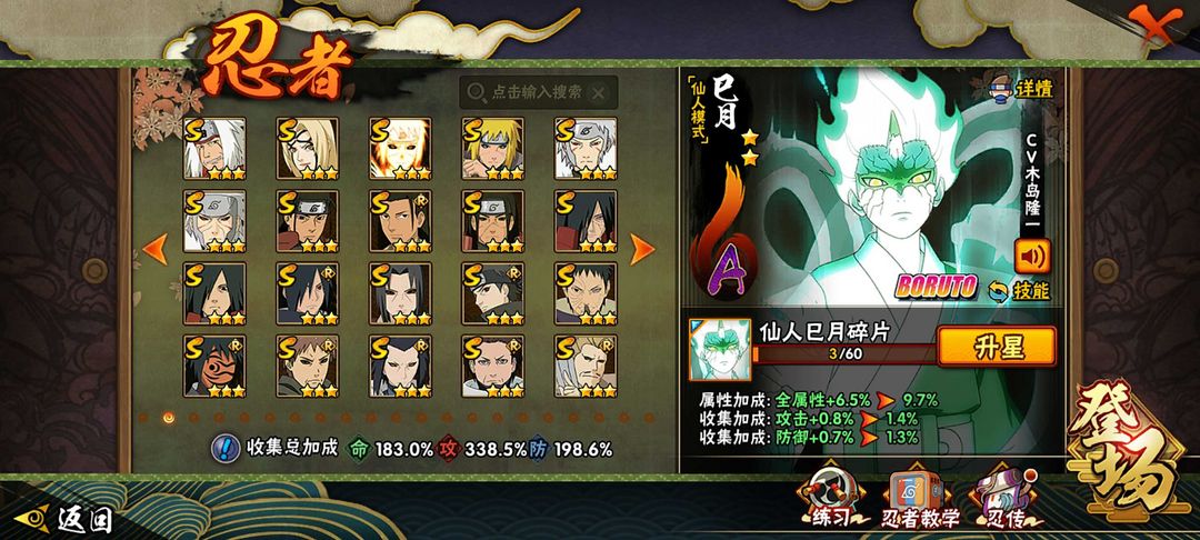 仙人巳月已秒❤️全s忍⭐️金身水门❤️漂泊佐助❤️3000w战力❤️黑绝♈新春漂泊系列❤️全高招忍者