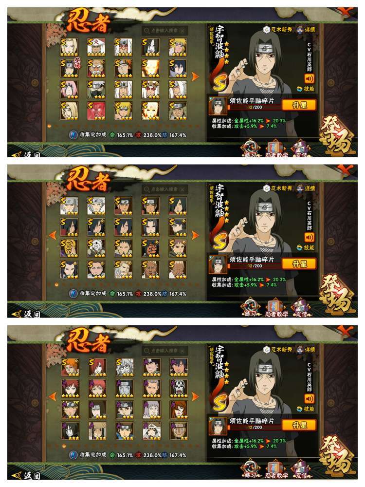 装备描述:如果上号被顶应该是上一个租号的,再上一次就好了。请理性游戏不要开挂希望各位大哥高抬贵手。高招s都有,氪金s有须佐止水,小胡子,佩恩超,罗砂,红夜之刃神秘面具男,创立斑,氪金a有一个漂泊扉间。氪金通灵有一个熊猫,不氪金的通灵基本都有。