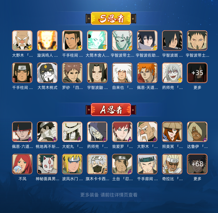 神驹斑/黑绝/52S86A全忍者/十尾带土/五影斑/侠隐佐助/漂泊带土/仙人巳月/九喇嘛水门/妖怪纲