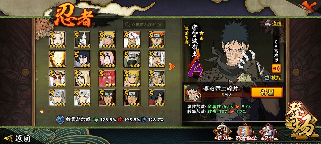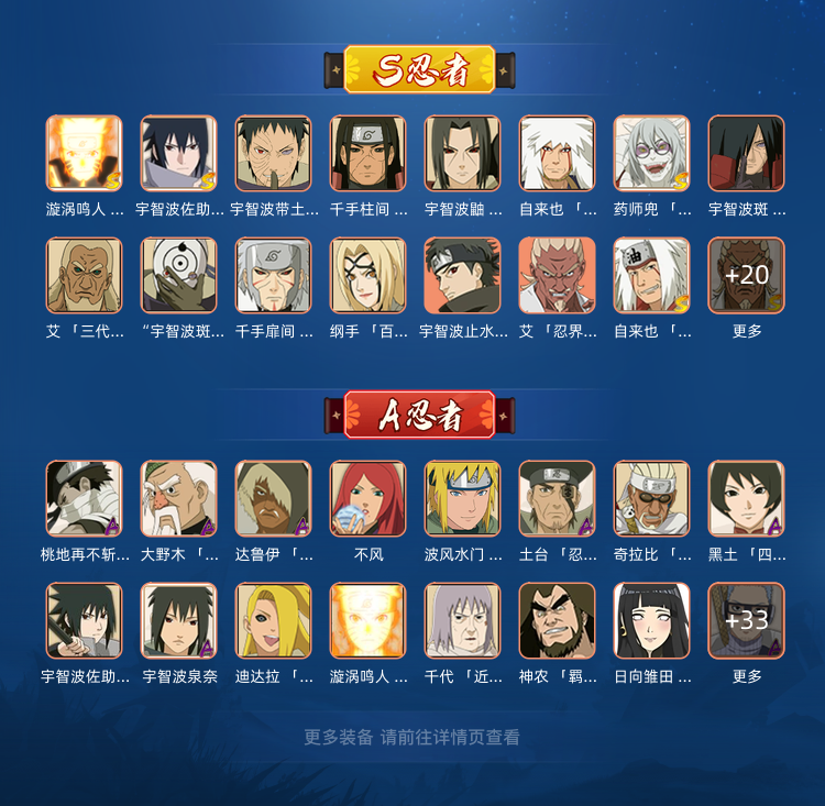 ⭐️漂泊带土,传说自来也,须佐卡,须佐止水,熊猫,所有高招【34S⭐,2000w+战力,可团本】