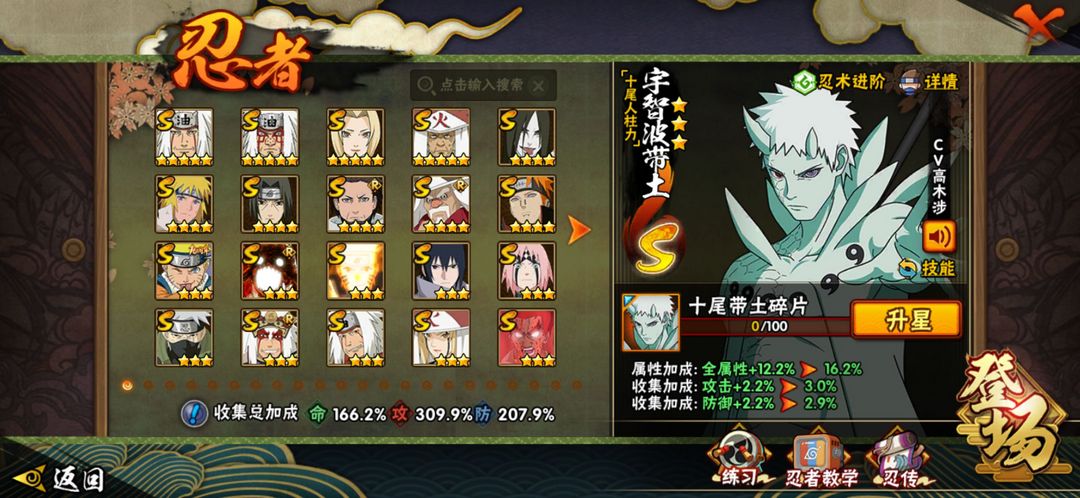 十尾带土已出3300万战力❤️传说三忍自来也 双神威卡卡西,百战佩恩,忍战艾已秒满s忍者,满高招忍者