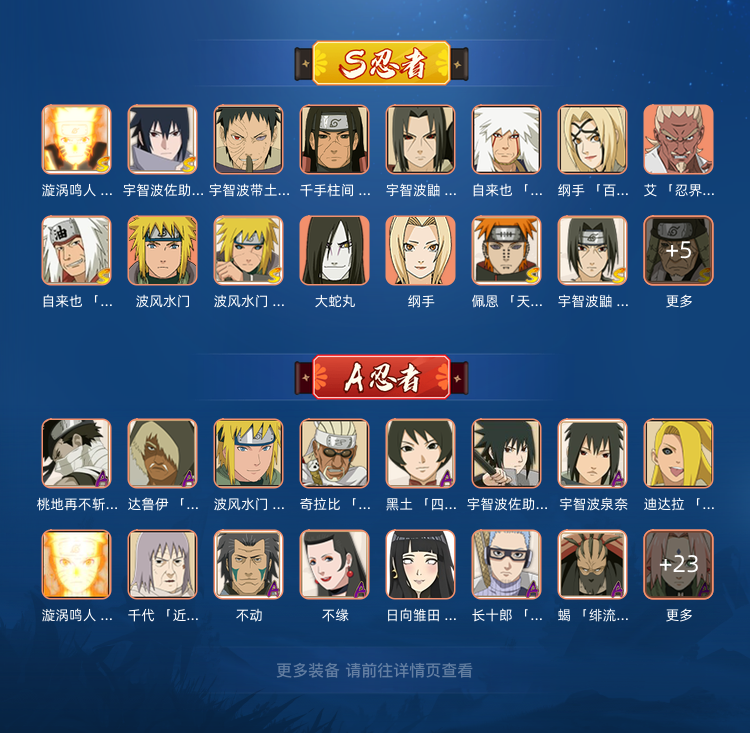 装备描述:秽土解斑✨永恒万花筒佐助✨桃式博人✨漂泊佩恩✨漂泊小南✨死门凯✨全高招SA