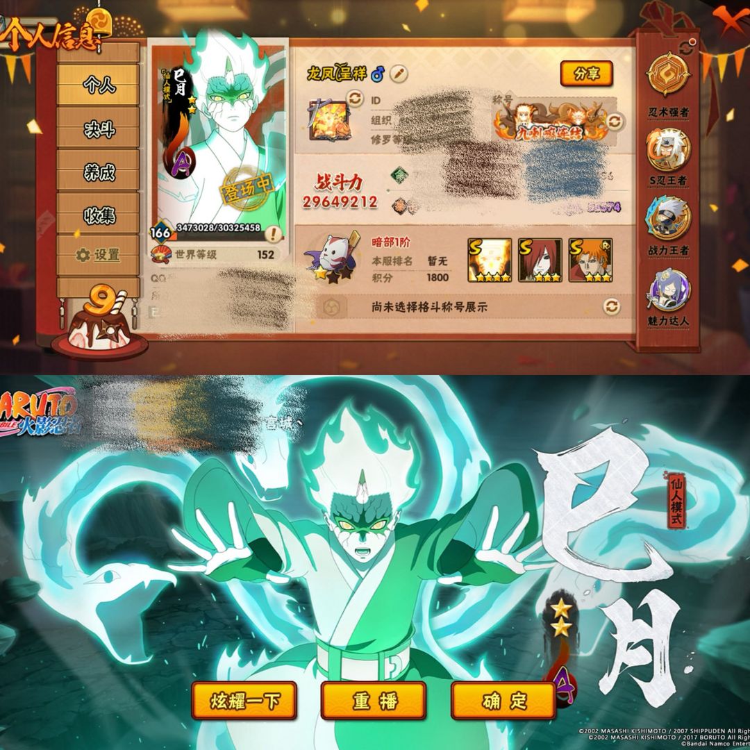 仙人巳已秒✨2900w300忍者✨51S+68A✨九喇嘛水门✨须佐卡卡西✨天道超白面具舍人✨高招全忍