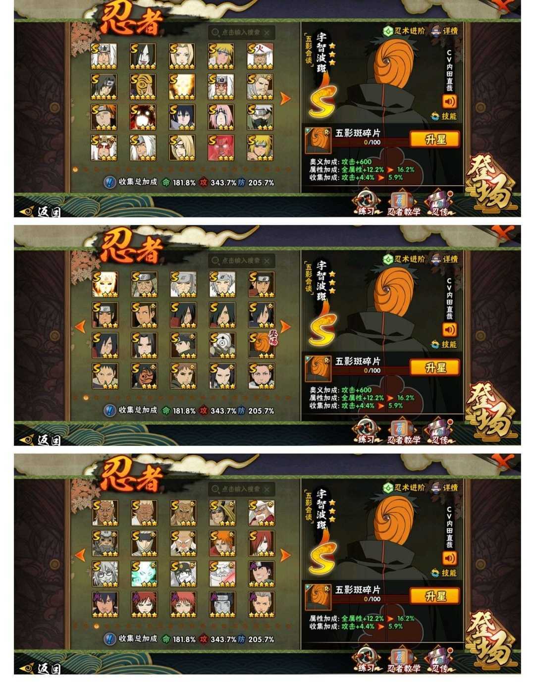 五影会谈斑☀️侠隐佐助☀️九喇嘛水门黑绝☀️410全忍者高氪全通灵☀️点券忍者全收集3500W战