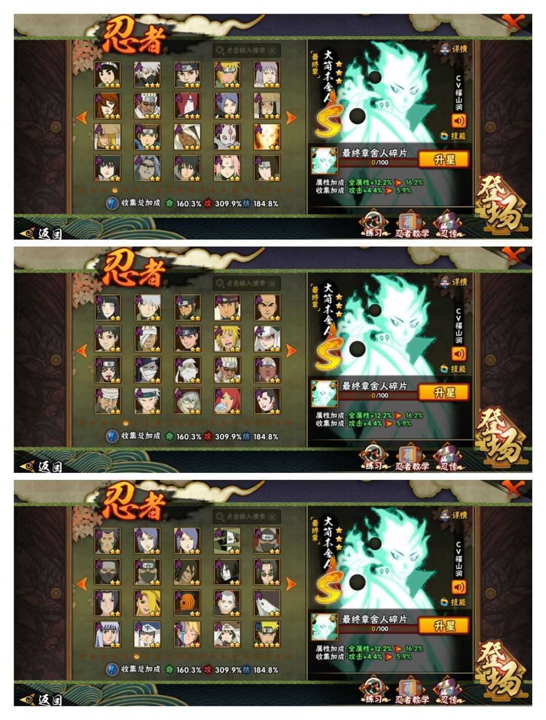 侠隐佐助已秒☀️九喇嘛水门☀️黑绝漂泊带土☀️53S全忍者☀️3000W战☀️六尾鸣人☀️传说自来也