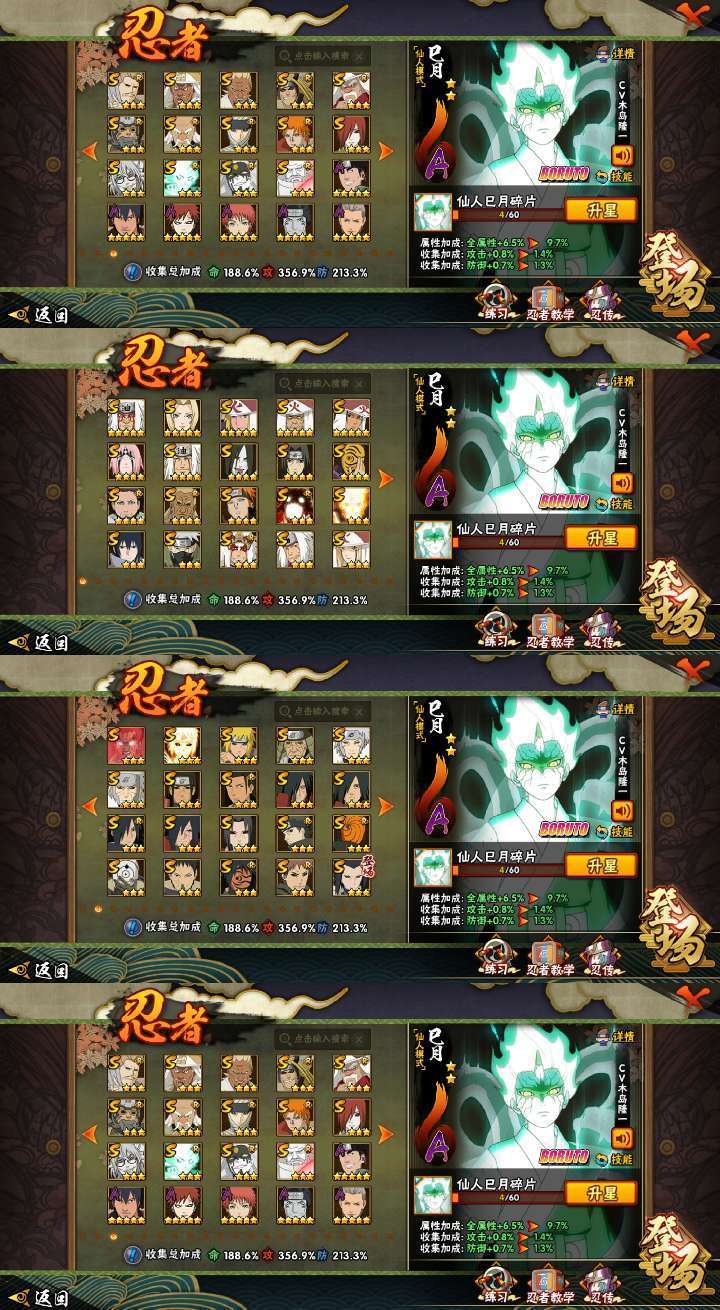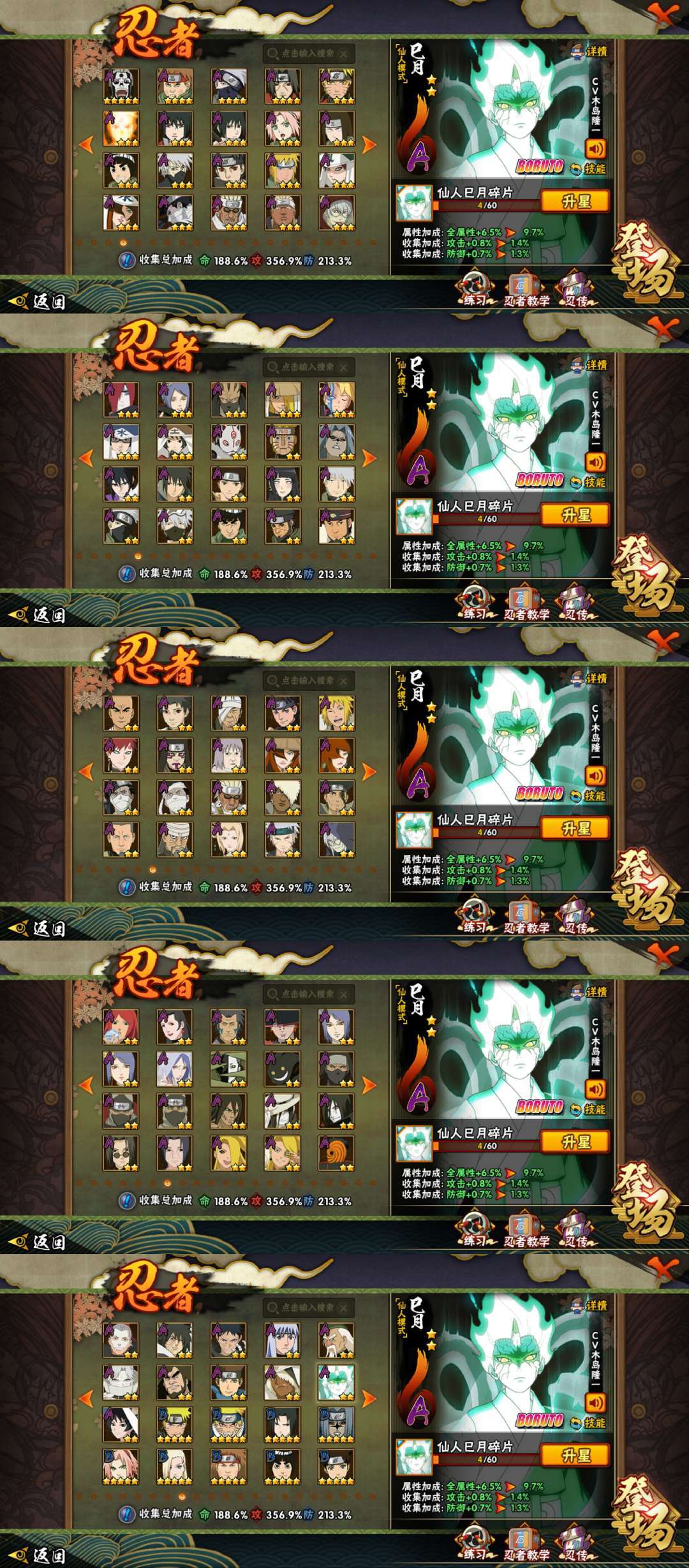 仙人巳月⭕侠隐佐助⭕五影会谈斑⭕3500万54S全忍者全通灵⭕黑绝⭕漂泊带土⭕高氪满配3000w