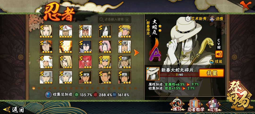 装备描述:新春蛇叔,新春全系列忍者,高招as全系列,点卷a系列