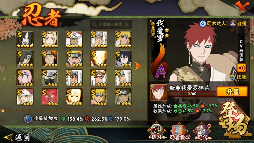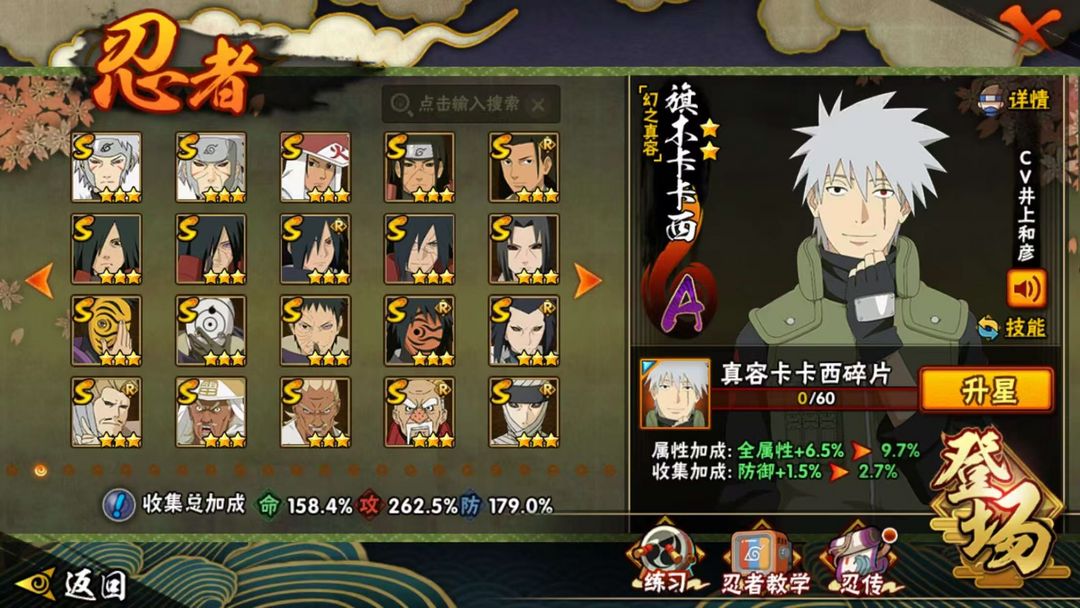 装备描述:44S❤秽土解斑❤暴怒带土❤忍战带土❤桃式博人❤疾风咒佐❤秒杀一切❤