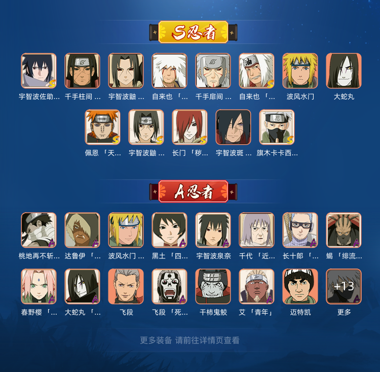 10s,34a,70c,卡卡西,万花筒佐助,秽土转生二代,秽土转生再不斩,传说自来也,秽土转生柱间
