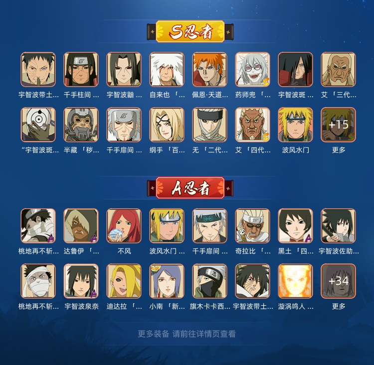 限制: 撤单率<1%才可租用此帐号装备描述:S忍者:纲手,大蛇丸,猿飞日斩,漩涡鸣人「九喇嘛连结」,春野樱「忍界大战」,自来也,自来也「仙人模式」,自来也「舞之豪杰」,纲手「百豪」,迈特凯「死门」,波风水门,