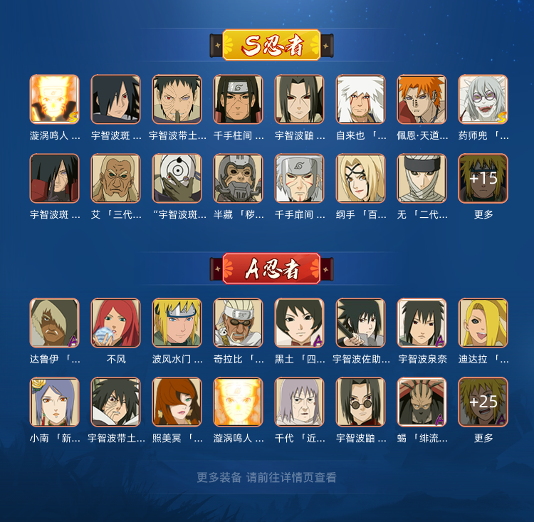 限制: 撤单率<1%才可租用此帐号装备描述:S忍者:纲手,大蛇丸,猿飞日斩,漩涡鸣人「九喇嘛连结」,春野樱「忍界大战」,自来也,自来也「仙人模式」,自来也「舞之豪杰」,纲手「百豪」,迈特凯「死门」,波风水门,