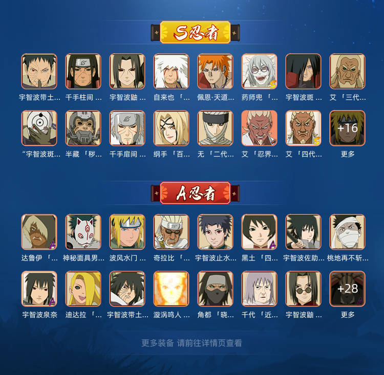 限制: 撤单率<1%才可租用此帐号装备描述:S忍者:自来也 「仙人模式」;宇智波佐助 「永恒万花筒」;千手柱间 「秽土转生」;漩涡鸣人 「九喇嘛连结」;千手柱间 「木叶创立」;自来也;猿飞日斩 「秽土转生」;宇智波带土 「忍界大战」;宇智波斑 「木叶创立」;猿飞日斩;大蛇丸;大筒木桃式;宇智波鼬 「须佐能乎」;“宇智波斑” 「白面具」;波风水门;自来也 「舞之豪杰」;罗砂 「四代目风影」;神秘面具男 「红夜之刃」;波风水门 「秽土转生」;佩恩 「天道」;宇智波斑 「秽土转生」;千手扉间 「秽土转生」;艾 「忍界大战」;艾 「三代目雷影」;迈特凯 「死门」;宇智波鼬 「秽土转生」;神秘面具男;宇智波止水 「须佐能乎」;纲手;宇智波斑 「秽土转生·解」 A忍者:照美冥 「五代目水影」;飞段;春野樱 「百豪」;干柿鬼鲛;大蛇丸 「晓」;小南;猿飞阿斯玛;千手扉间 「漂泊武士」;药师兜 「半蛇斗篷」;小南 「漂泊浪客」;迪达拉 「秽土转生」;我爱罗 「忍界大战」;漩涡博人 「桃式显现」;波风水门 「新春限定」;宇智波佐助 「万花筒写轮眼」;漩涡鸣人 「仙人模式」;黑土 「四代目土影」;宇智波带土 「暴怒」;长门 「青年」;迈特凯;达鲁伊