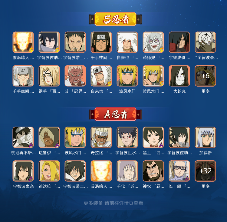 22S 九喇嘛鸣人须佐卡卡西传说中自来也大蛇丸百豪纲手波风水门秽土转生宇智波斑白面具忍战带忍战艾金角