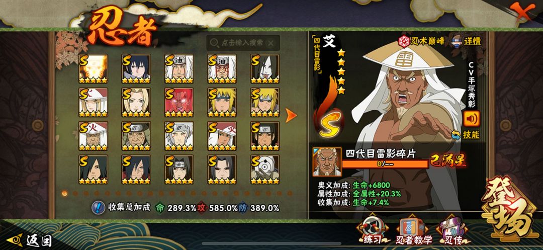 6680万战力✨新团本轮墓边狱秒杀✨新忍者晓迪已秒✨27个五星S✨全忍时装✨88魅力✨775万攻击