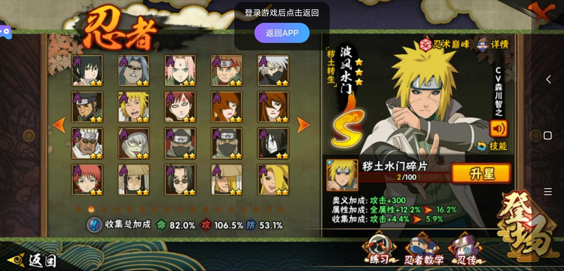 装备描述:欢迎来到超影租号小店,火影能带来快乐也你带来自闭。有梦想你也许就是火影忍者下个超影♥ 账号如标题。忍者看上图。不要动金币跟高招卷。 。账号可以段位赛。安卓区。 喜欢的话点收藏。 祝你游戏愉快O∩_∩O