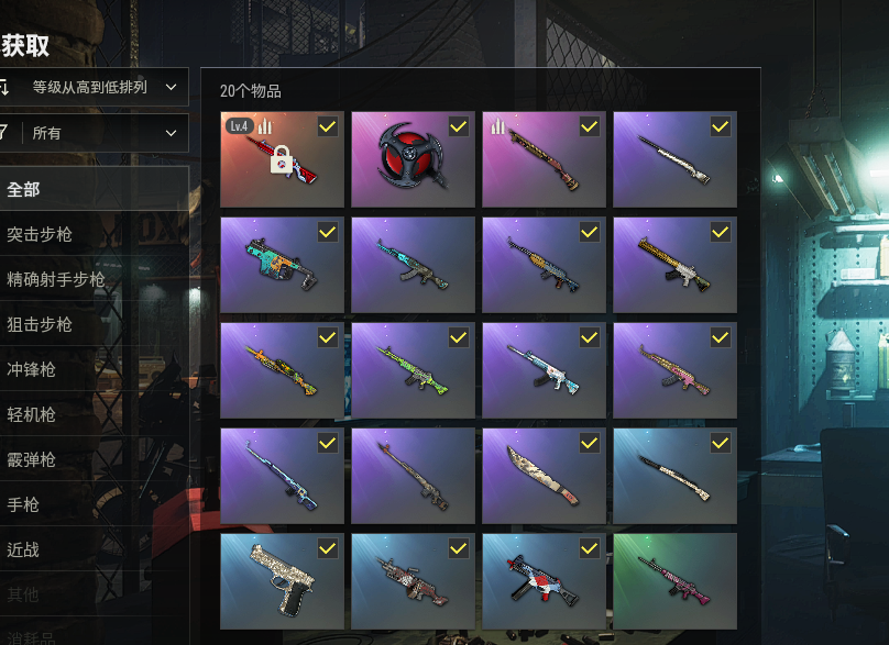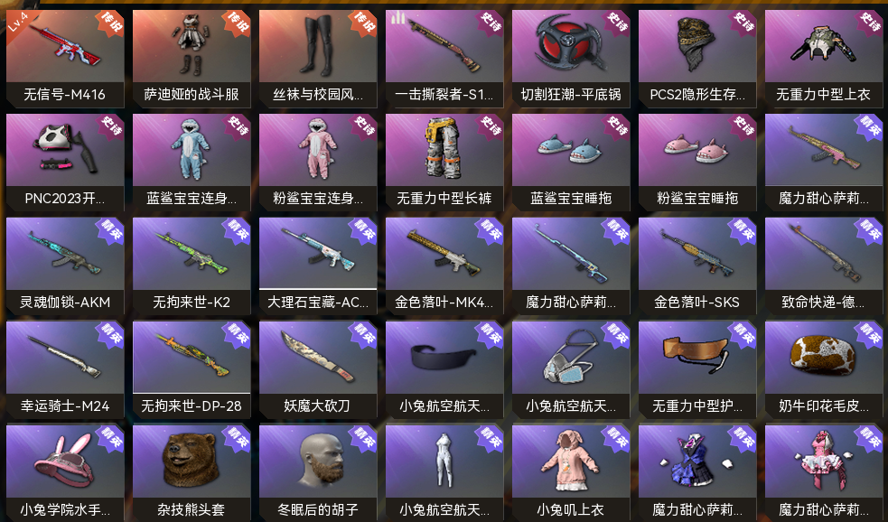 ④级无信号M4✅灵魂枷锁AKM✅群雄逐鹿M4✅魔力甜心AKM✅金色落叶SKS✅幸运骑士M24✅数码9