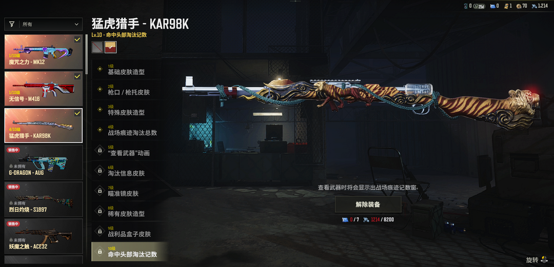 ④级猛虎猎手98K✅异色98K✅①级无信号M4✅①级魔咒之力MK12✅黄道猎手M4✅黄金齿轮M762