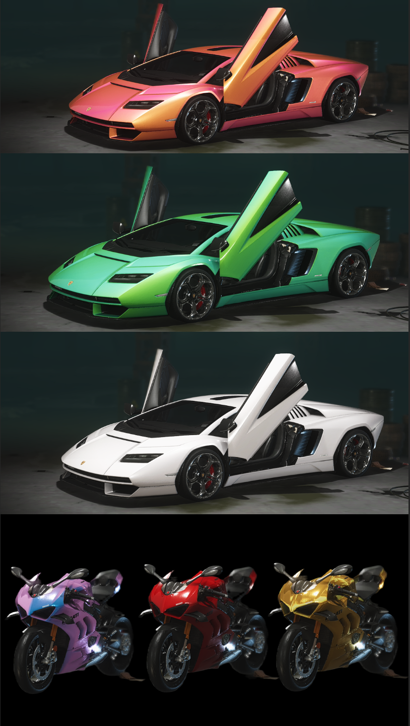 布加迪红白双色/满兰博/满NewJeans女团/双马丁/3杜卡迪/满级异色火麒麟/满级孙悟空/满级D