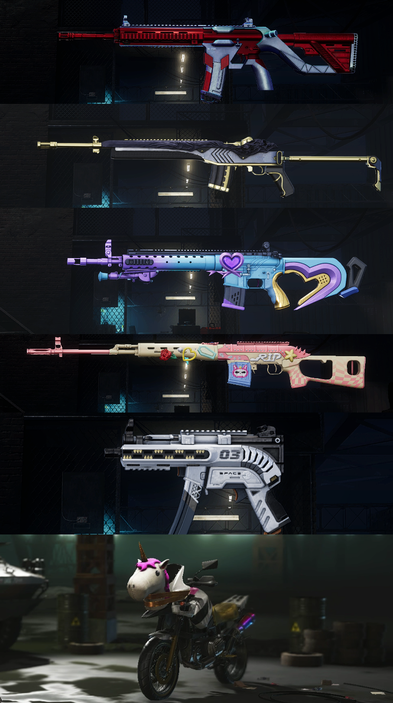 装备描述:禁排拉风龙裤【五成长武器-无信号M416-沙悟净mini-粉梦德拉贡-魔咒之力-无重力MP5K】/双马尾/科技发光套/白熊套/圣诞之子套/青年谢盖尔/铁血警官套装/翡翠烟雾弹/无信号S12K/粉梦M24/蟒蛇AKM/