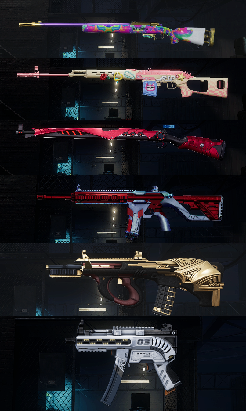 装备描述:悲喜套/拉风龙套【六成长武器-弥诺陶洛斯AUG-无信号M416-午夜惊魂98K-粉梦德拉贡-彩虹M24-无重力MP5K】老黑/大金牙/白熊套/维娜托套装/圣诞之子套/魔力甜心紫套装/发光圣诞套装/无重力M249/熔岩SKS/银河AKM/鲨鱼睡衣/