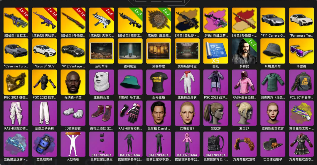 ⭐保时捷全套⑩异色美杜莎762⑩异色孙悟空M24⑩异色霓虹AUG⑥无重力MP5⑤暗影之主MK12