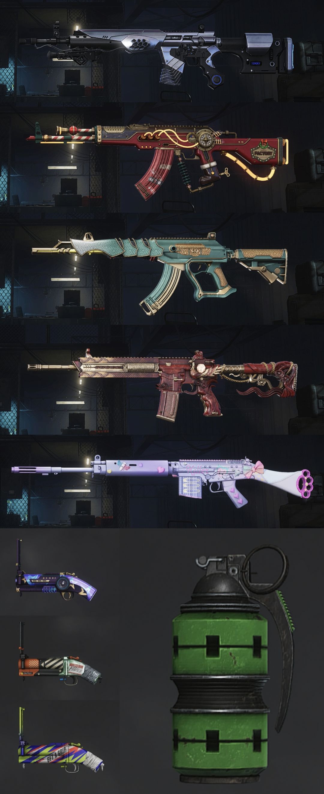 装备描述:【十神器】三阿斯顿马丁跑车/满级圣诞老人小助手AKM/三级异色妖魔之触ACE32/暗影之主MK12/三级朱雀M416/危险玩偶屋SLR/紫烟枪/橙烟枪/黄烟枪/翡翠色烟雾弹/魔力甜心套装/白熊套装/阿斯顿马丁套装/黑头等上千件稀有服装
