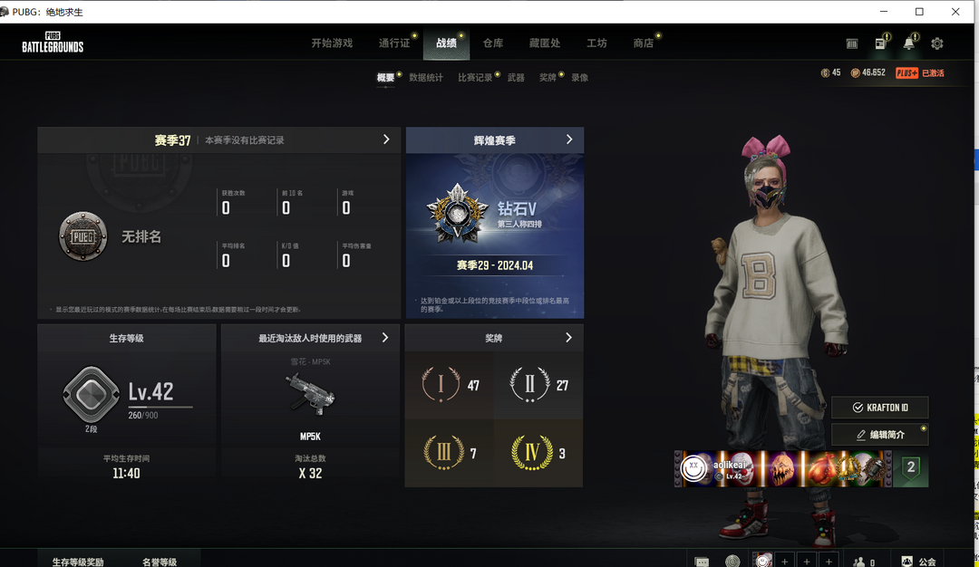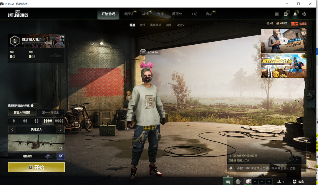 可排位✅叛逆兔小熊套装✅可自行验正,验正后可排位✅完美角度-Kar98k✅比基尼(黑色)✅