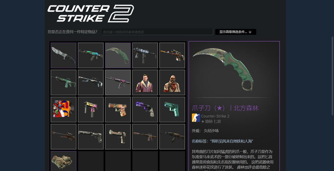 完美B⭐爪子刀森林⭐猎杀者匕首⭐红树林手套⭐AK47可燃冰⭐沙漠精英⭐破碎铅秋⭐沙鹰机械工业