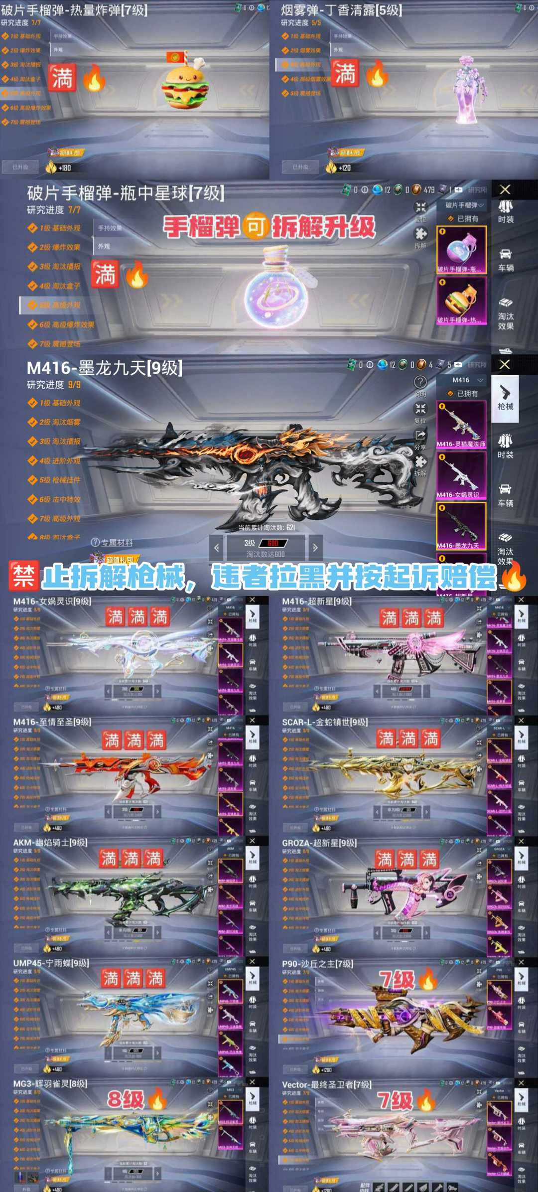 限制: 租号15次及以上 | 撤单率<30%才可租用此帐号装备描述:❤️拆解枪械载具永久拉黑,如果装备与图片描述不符请撤单,不要去拆解。 ⭐账号价值高,累计充值几十万,如开挂或使用第三方造成封号,按累计充值金额起诉赔偿,打官司追究到底。 ⭐⭐注意事项: 1、拆解枪械拉黑处理并上报封停平台账号!!! 2、禁止伤害队友、频繁逃跑游戏,违者永久拉黑。 3、如造成禁麦禁言,拉黑处理,请文明游戏。 4、订单由平台客服处理,号主无权处理,有问题咨询平台客服。 ❤️温馨提示: 感谢各位老板的支持!!!协助登录后不跳转到游戏,可能是延迟,请手动去游戏登录界面查看有无登录。如果没登录,请关闭和平精英重新打开更新后再重新协助登录。