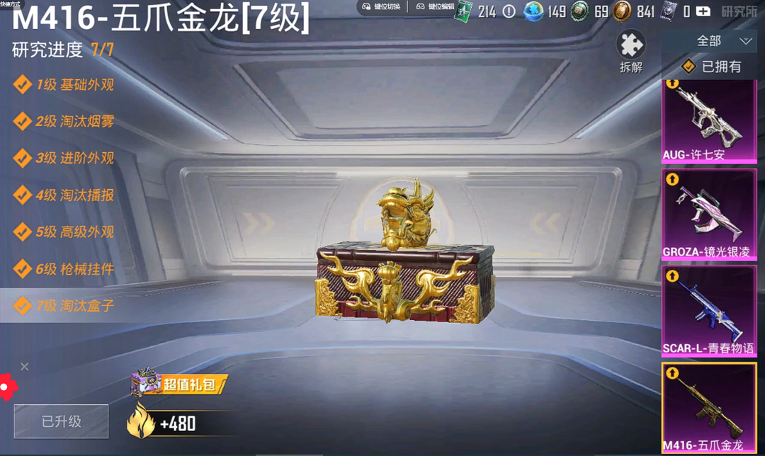 6粉装梦幻火箭守护骑士金耀白虎❥满级M4五爪金龙枪皮Scarl镜光青春物语AUG许七安❥载具宝马M4