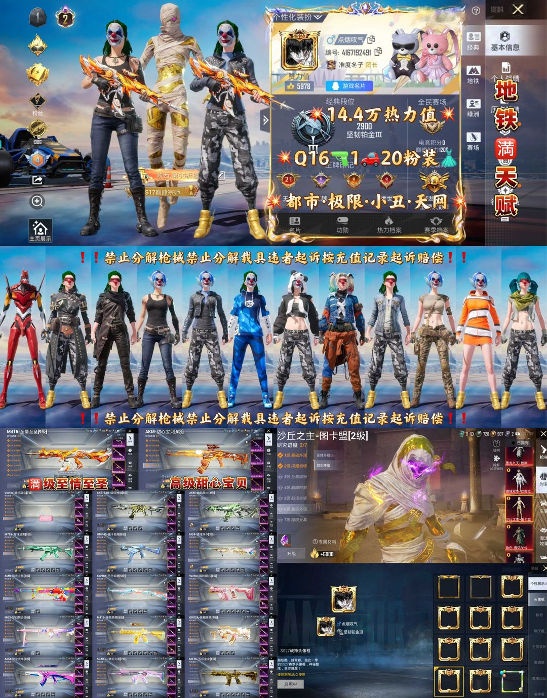 限制: 租号25次及以上 | 撤单率<60%才可租用此帐号装备描述:直接上号 租客须知◆ 本账号已在公安局备案,请勿对账号做出非法操作 如:开挂,坐挂车,使用第三方工具等,请您和谐游戏,如有损害财务的情形必追究到底 登录游戏:登录请打开和平精英并勾选上同意协议,再点击开始登录即可,如跳转停留主页面无反应,!!!重新打开和平精英!!!!即可正常进入游戏 **:如账号触发账号系统,会为您补上时间,到时不会下线,直到下一位租客租赁账号为止 请尽量不要以**进行 恶意,恶意者进行拉黑处理,永不放出 关于登号器,登录请打开和平经营并勾选上同意协议,再点击开始登录即可,如跳转停留主页面无反应,重新打开和平精英即可正常进入游戏 如果您喜欢本账号,可以点个收藏