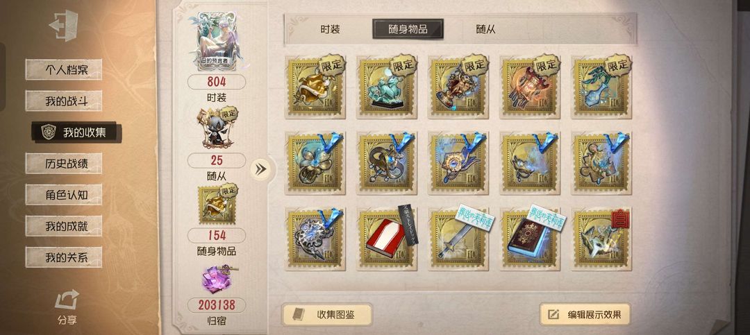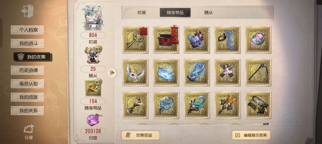 随身物品数量: 152