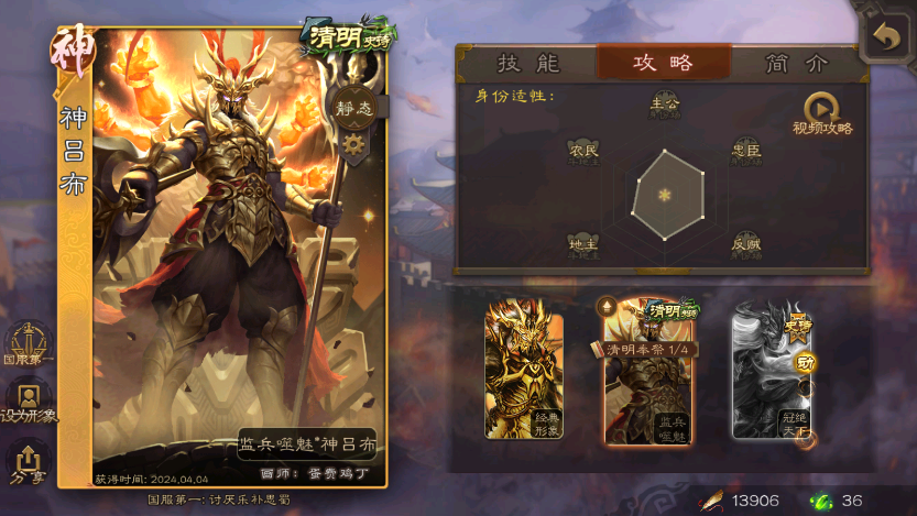 限制: 撤单率<80%才可租用此帐号装备描述:【有点将卡】大将军◆动刘焉◆动神曹操◆神甘宁◆动谋黄忠66史诗动神孙策动神赵云动大宝动马钧杜预谋夏侯
