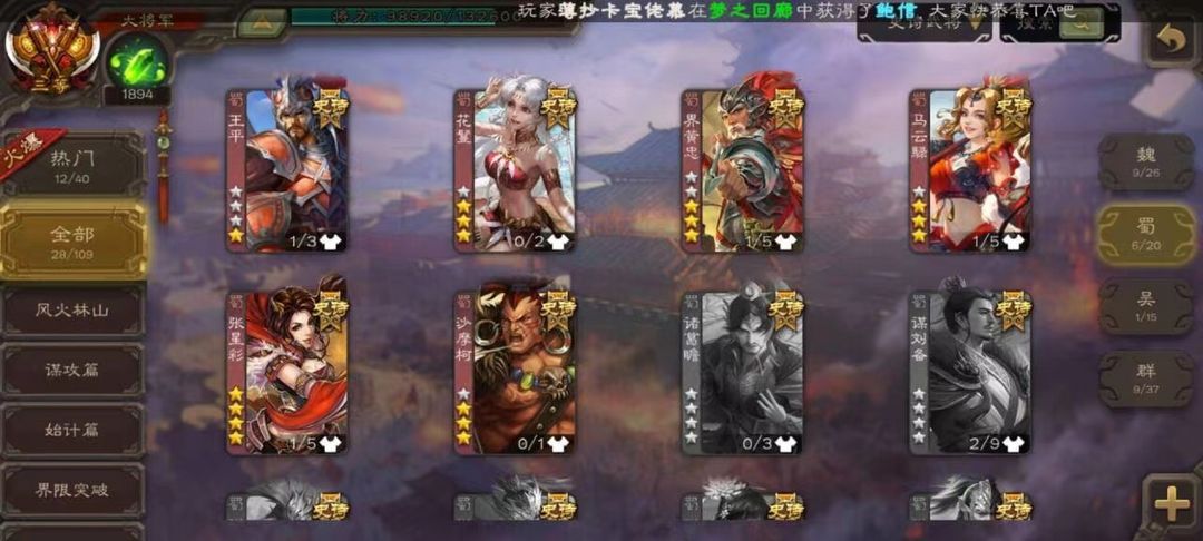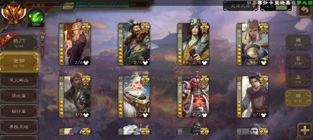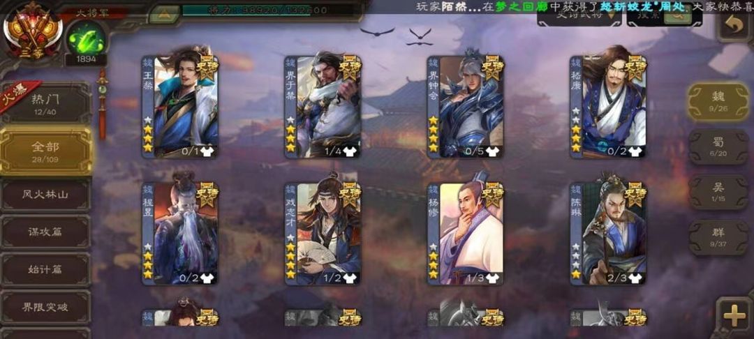 大将军★动神司马懿★曹髦★界钟会★裴秀★界徐盛★29史诗杨修左慈许攸沮授花鬘程昱戏志才司马微沙摩柯