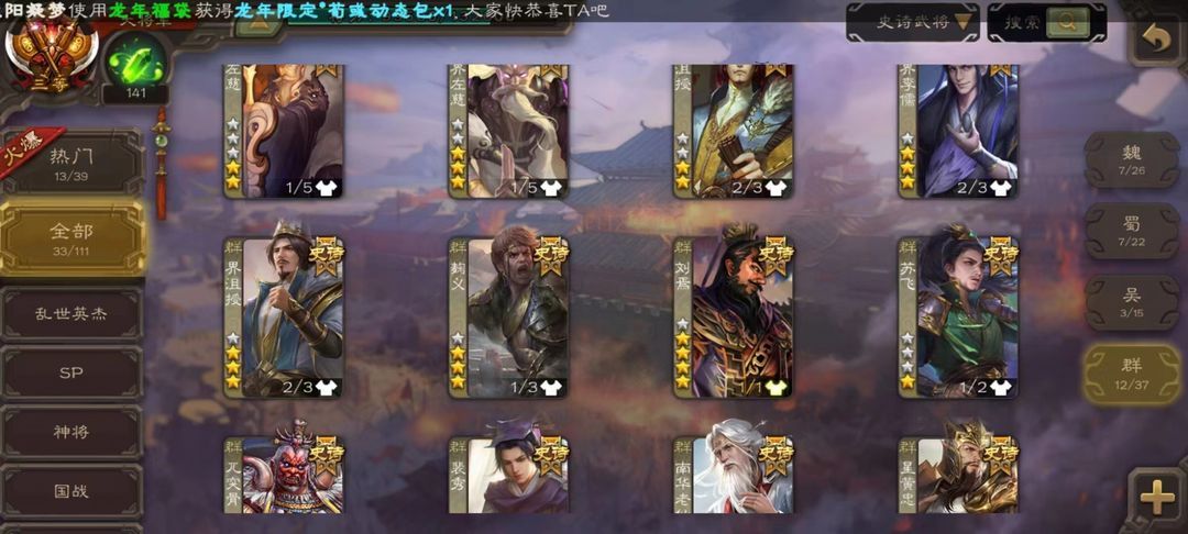 【曹髦】大将军◆玉龙动刘焉◆回廊玉龙动神荀彧◆回廊潜蛟动界钟会◆裴秀界沮授33史诗动界李儒郭女王