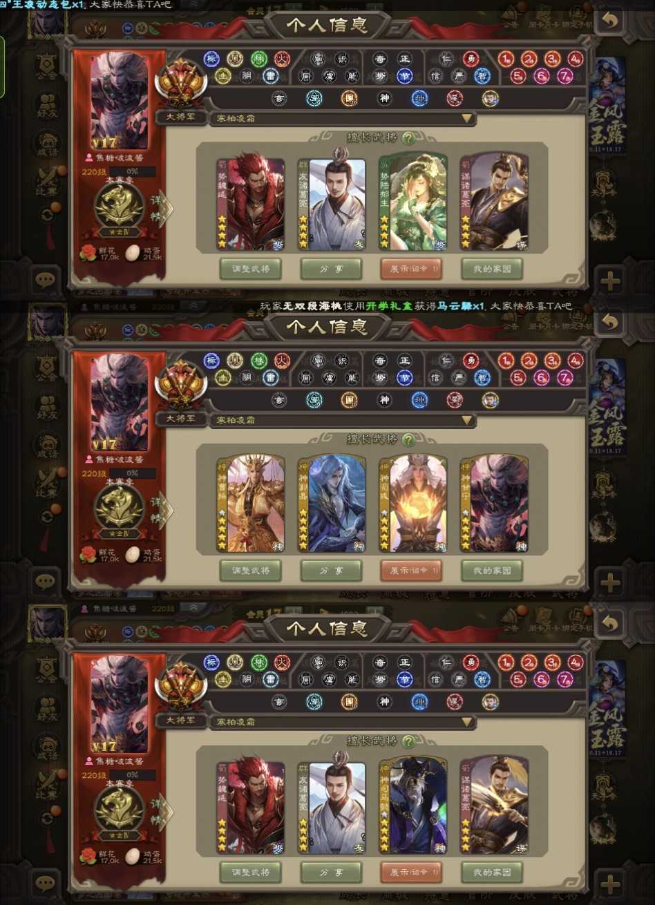 手气卡充足/90ss/势魏延/势陆郁生/友诸葛亮/至臻十常侍/回廊神甘宁/曹髦