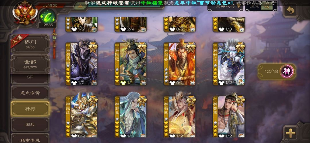 装备描述:双形态十常侍 势陆郁生,动态界沮授大人 新品势太史慈 新品史诗曹髦 新品玄剑友徐 庶 新品动态司马昭 新品加强动态神司马 新品 神鲁肃 新品大攻车张奋 新品权一动态谋关羽 动态神郭嘉 梦廊动态神荀彧 动态神甘宁炎龙 动态刘焉 强力文鸯 动态谋貂蝉 动态谋诸葛亮 谋公孙瓒 梦廊动态大宝 动态曹婴 动态王元姬 动态界左慈动态界钟会 动态界李儒动态神陆 逊动态戏子 动态灵魂歌王 动态许攸动态白马神吕布 神云 沙摩柯 骆驼 周处 祢衡 人黄忠 董卓 周不疑鲍信 谋诸葛瑾 谋荀彧动态谋黄月 英
