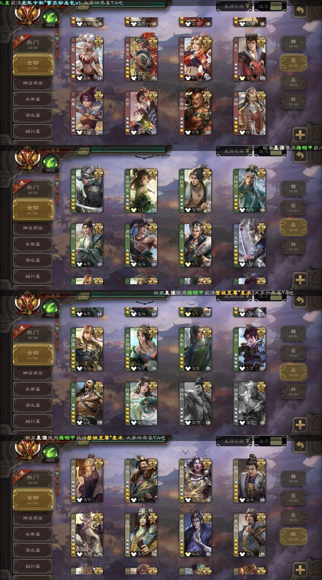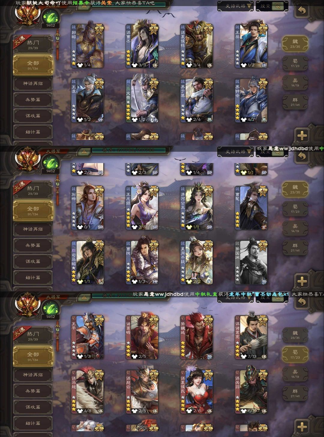 有卡/全热门/满至臻极品排面/势魏延/傲绝凌顶谋孙策/势太史慈/曹髦/龙兴蜀川刘焉/无敌排位