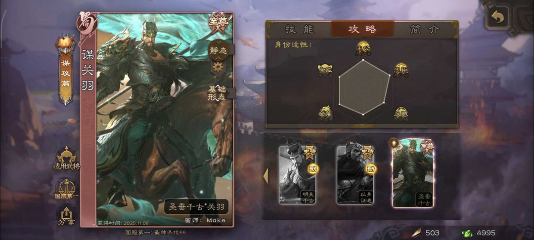 有卡/炸鱼先锋/圣垂千古至尊谋关羽/玉龙回廊留赞/天宫皮神赵云