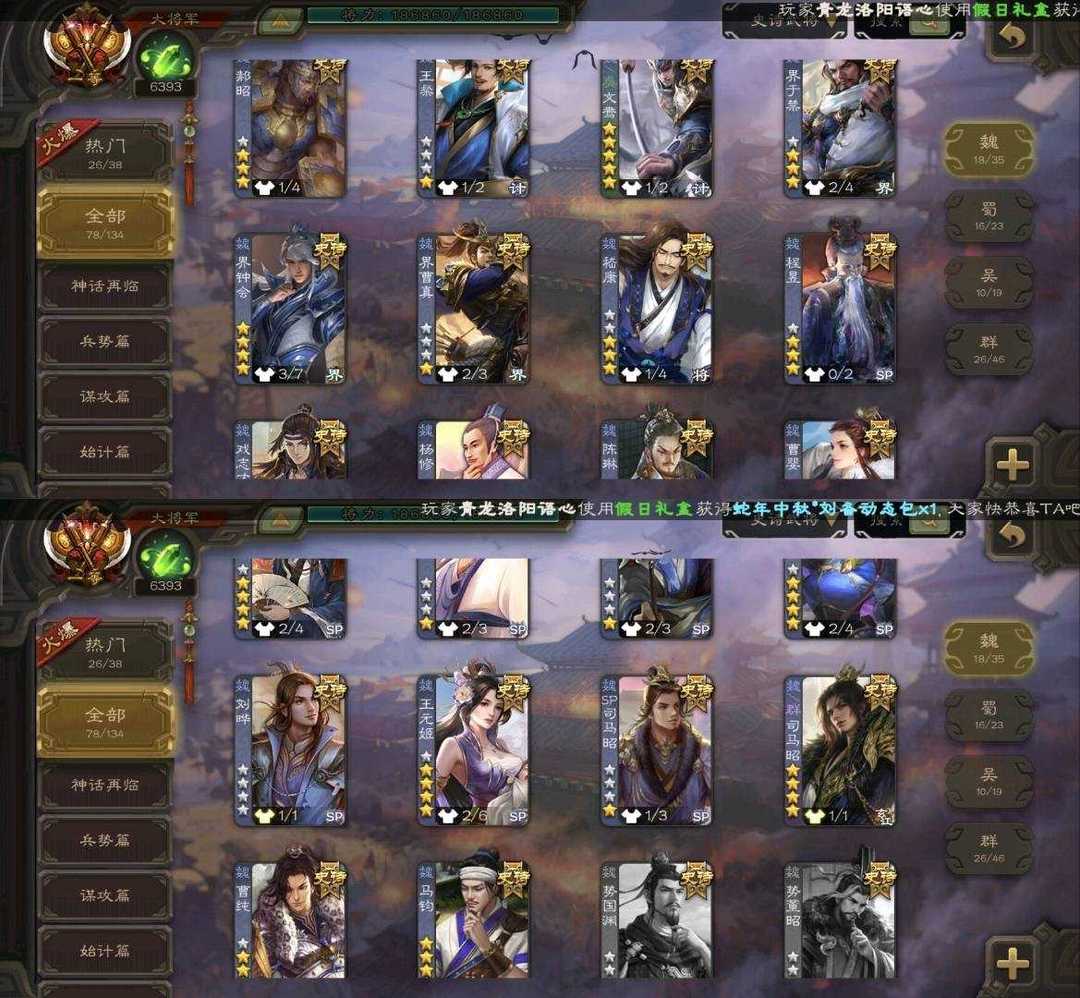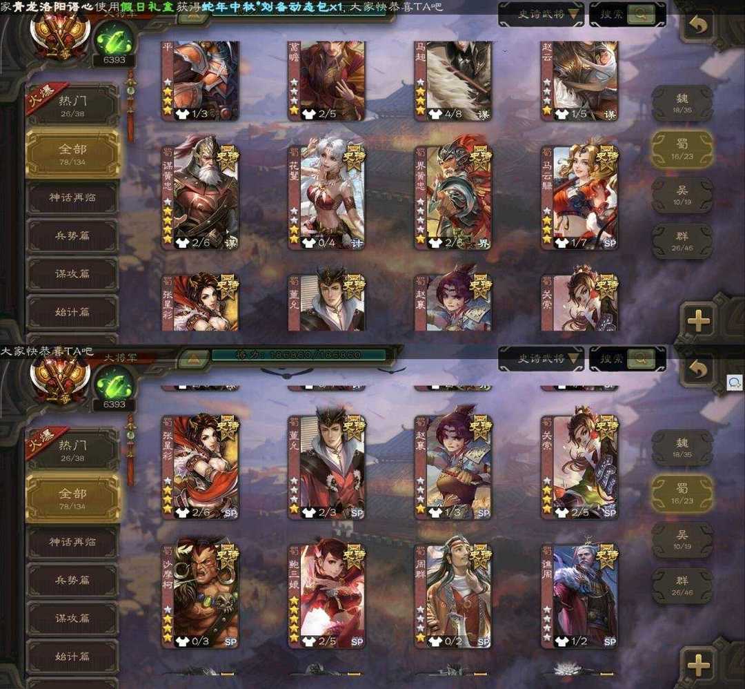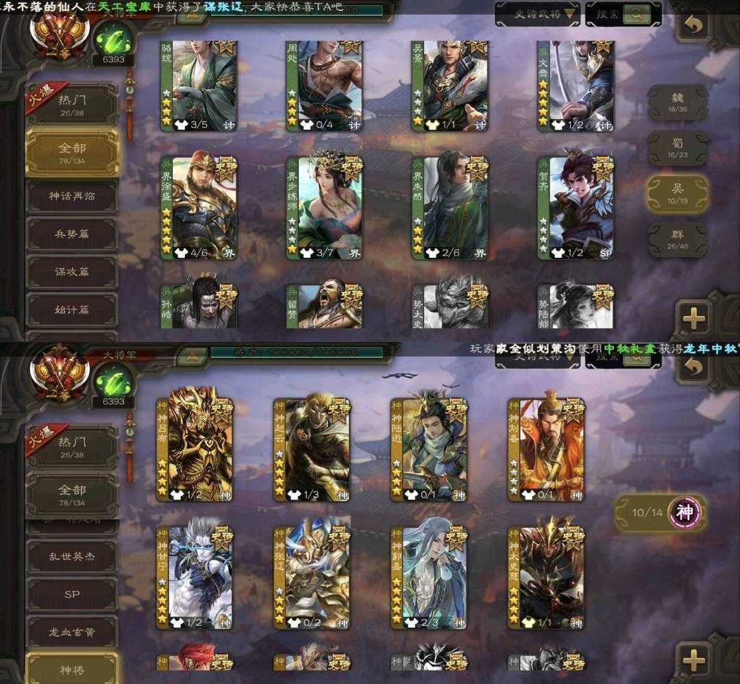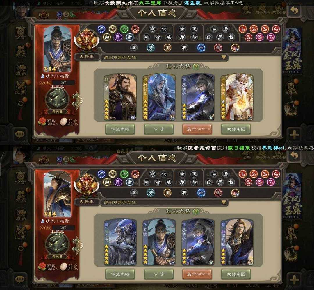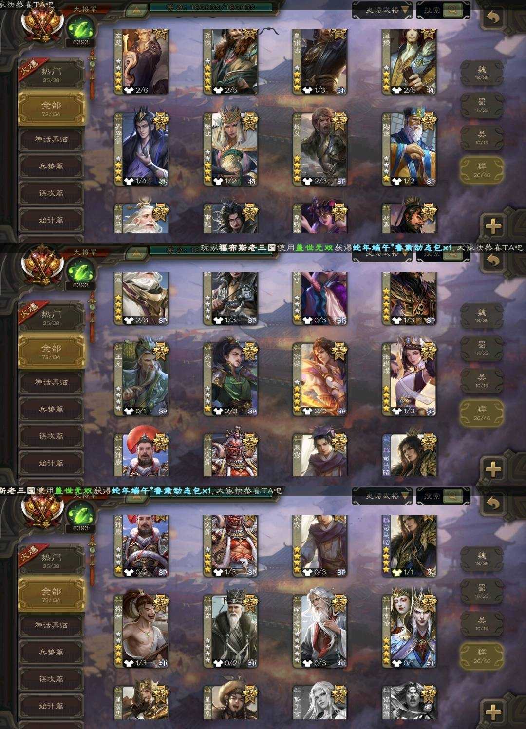 装备描述:魏国?郝昭?王粲?文鸯?界于禁?界钟会?界曹真?嵇康?程昱?戏志才?杨修?SP司马昭?司马昭?陈琳?曹婴?刘晔?王元姬?曹纯?马钧? 蜀国?王平?诸葛瞻?谋马超?谋赵云?谋黄忠?花鬘?界黄忠?马云騄?张星彩?董允?赵襄?关索?沙摩柯?鲍三娘?周群?谯周? 吴国?骆统?周处?吴景?界徐盛?界步练师?界朱然?贺齐?孙皓?留赞? 群雄?左慈?许攸?皇甫然?沮授?界李儒?张让?麹义?陶谦?司马徽?审配?卑弥呼?刘焉?王允?苏飞?徐荣?张琪瑛?公孙康?兀突骨?裴秀?祢衡?郑玄?南华老仙?十常侍?星黄忠?星董卓? 神将?神吕布?神赵云?神陆逊?神刘备?神甘宁?神张辽?神郭嘉?神太史慈?神孙策?神荀彧? 排位123 国战33 势若万钧-文鸯 潜蛟觊天-钟会 举棋若定-戏志才 锋芒毕露-曹婴 鼠年冬至-王元姬 能工巧匠-马钧 破军杀将-徐盛 灵魂歌王-留赞 扬刀立威-麹义 雄踞益州-刘焉 烬灭神骇-徐荣 横行四海-徐荣 冠绝天下-神吕布 战龙在野-神赵云 万人辟易-神甘宁 倚星折月-神郭嘉 勇撼日月-神太史慈